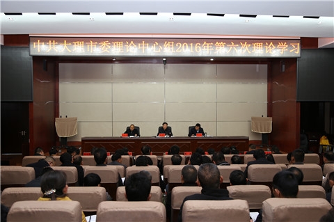 12月28日,市委理论中心组举行2016年第六次理论学习,传达学习中央经济工作会议、省第十次党代会精神,认真总结2016年的工作,谋划2017年工作任务,研究开启抢救模式加强洱海保护治理具体措施,进一步统一思想、凝心聚力,不忘初心、奋勇争先,全力加强洱海保护治理,推动我市经济社会平稳健康发展,以优异的成绩迎接党的十九大胜利召开。