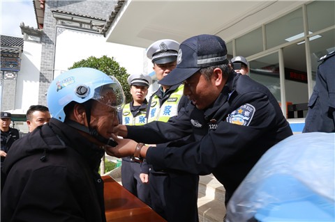 同时,民警还自编了“头盔佩戴三字经”:“插卡扣,贴后脑,护太阳,别忘调。”“这头盔比我自己买的还结实!”骑三轮车来的赵大爷笑着说,“以后赶集、送孙子上学,我都戴上头盔,给喜洲人树立安全榜样。”