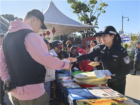 为弘扬宪法精神,增强群众法治观念,近日,大理市公安局双廊派出所结合工作实际开展宪法宣传活动。活动中,双廊派出所通过设立宣传点、发放相关宣传材料、为群众解答法律疑难等方式,向群众宣传宪法、禁毒防艾、酒驾醉驾、洱海保护、防范电信网络诈骗及冬季生活安全相关知识。同时,围绕宪法、治安管理处罚法等设计的趣味考题,吸引群众踊跃参与,答对的群众获赠环保袋、宣传手册等纪念品,在轻松的氛围中深化法律知识。 黄明惠 摄